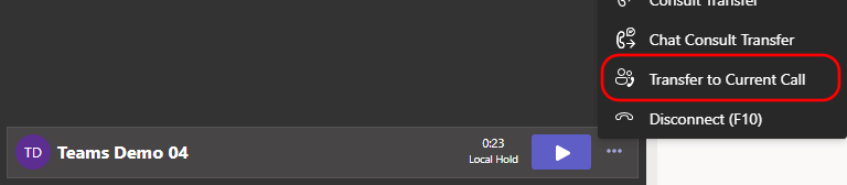 * Transfer holding call to current call. This enables agents to merge calls and automatically disconnecting themselves.