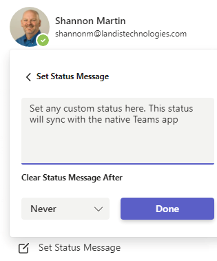 * Custom Teams Status Messages: Users can now set or edit their status messages, which automatically sync with the Teams app—no need to open the Teams app separately to update your status!