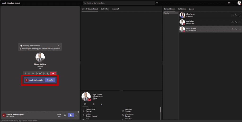 If you use both Landis Contact Center and Attendant Console, call recording becomes more accessible. When your policy allows, you can start and stop recordings directly from the Attendant Console interface.