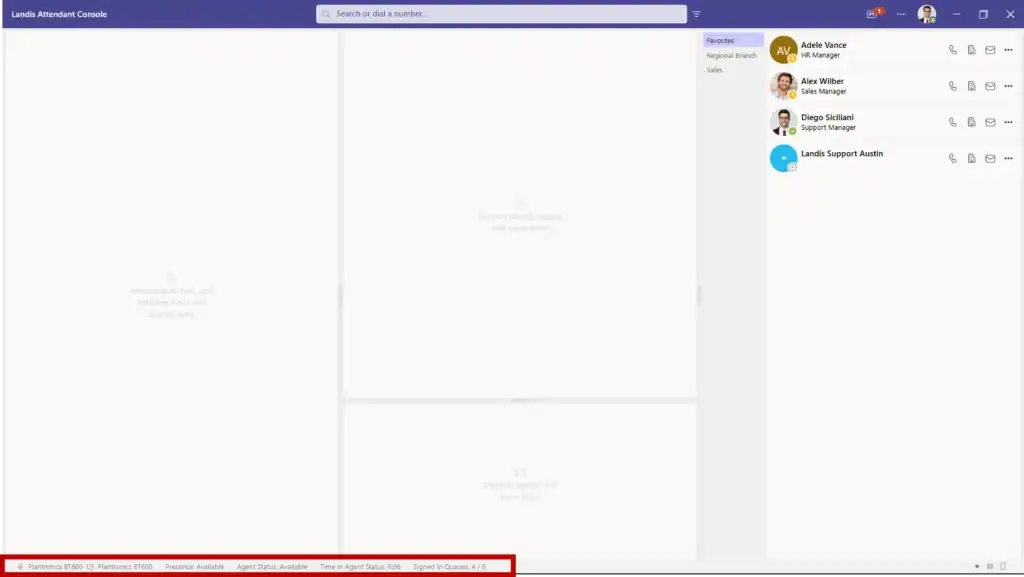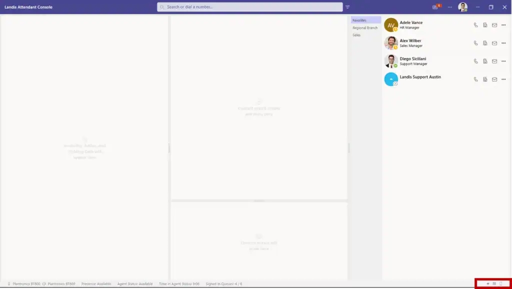 Sign in or out of Landis Contact Center queues without leaving Attendant Console! You can also update your status from the same panel.
